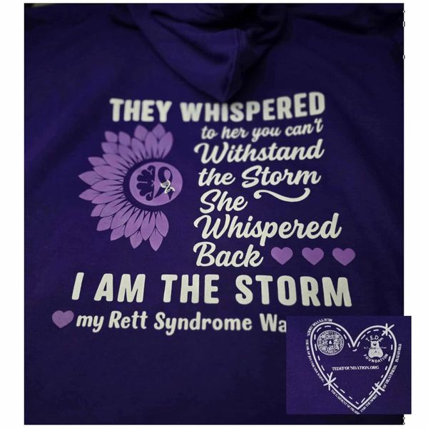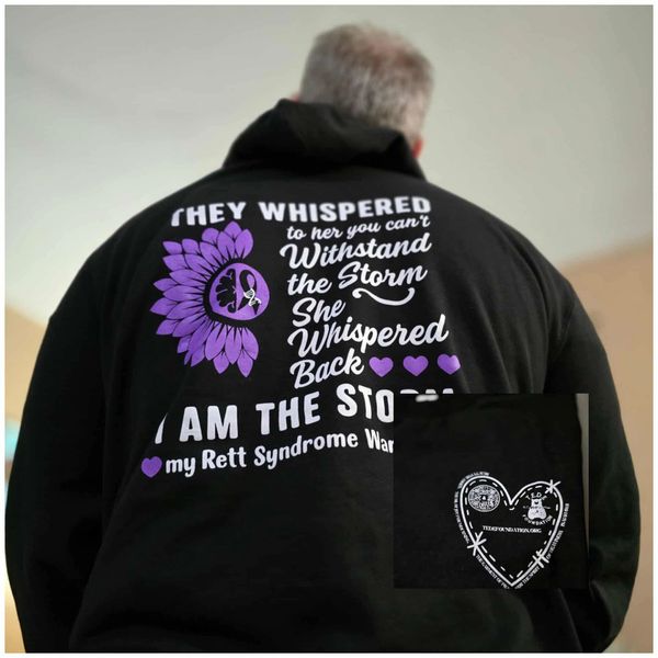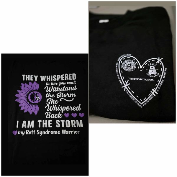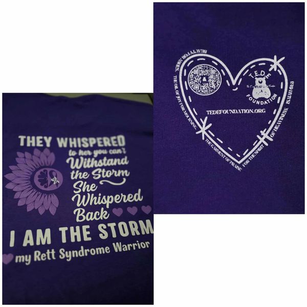 Purple Out with us and Raise Rett syndrome Awareness! You now can join us in solidarity by purchasing your gear. Her new design came together with many prayers and talks with God. The heart patch on the front and the sunflower on the back. The heart stitched represents quilted patch work. This symbolizes the hardships faced and tribulations that will continue to follow throughout a lifetime. Shaping every aspect of our lives. Allowing for growth, strength and triumphs. The scripture was a blessing given to us, in a time that felt like our worse chapter. Later learned it was more a pivotal one, one that we overcame. Knowing it is not going to get easier, but we are also not alone. Which is why we pass on the valued blessing in hopes this blesses others.