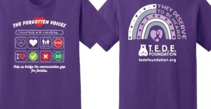 Join us as we Raise Rett syndrome Awareness! Celebrating her participation in utilizing her communication device to help design this T-shirt. Contributions will enable us to meet our goals and fund our mission.